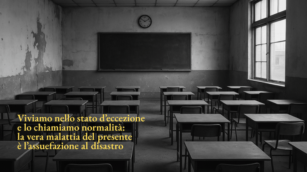 In questo senso, la scuola diventa un laboratorio politico di prim’ordine: lì si decide se l’eccezione resterà strumento di dominio o se diventerà atto inaugurale di una convivenza diversa.